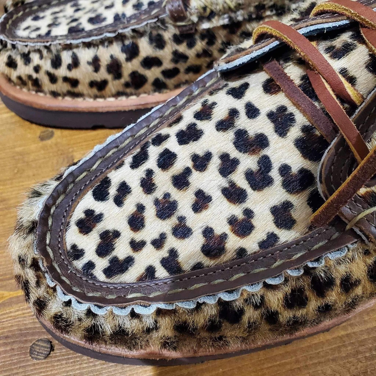 ハラコにレオパードがプリントされた